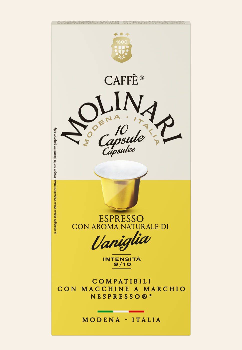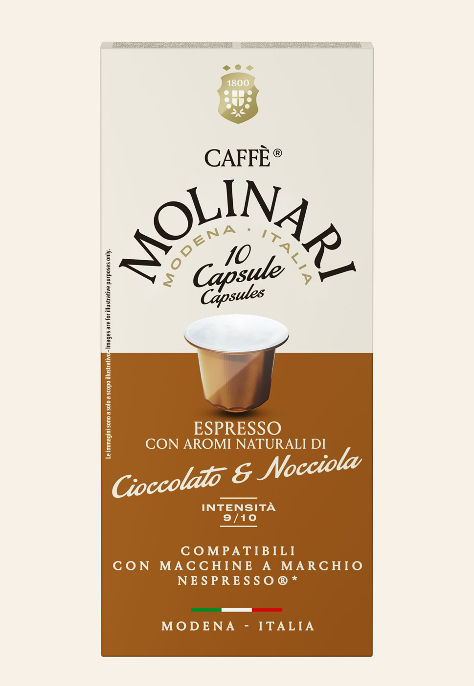 * Ochranná známka není majetkem Caffé Molinari Spa ani jiných propojených společností. Mezi Caffé Molinari Spa, Nespresso® a Nescafé® neexistuje žádná spojení. Kompatibilita kapslí tohoto balení je funkční pro použití na přístrojích Nespresso® a Nescafé® a ne nahrazuje původní použití kapslí vyráběných Nespresso® a Nescafé®.